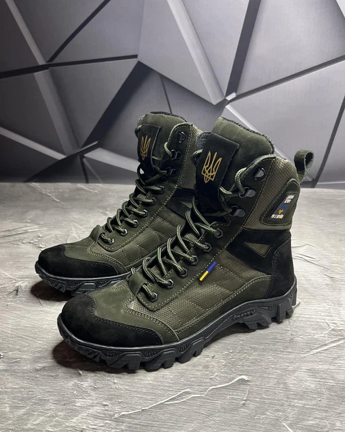 Нубукові Берці з сітчастими вставками хакі розмір 40