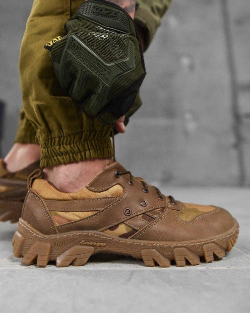 Тактичні військові кросівки коричневі шкіряні із піксельним камуфляжем р 40 (26,5 см) 3421