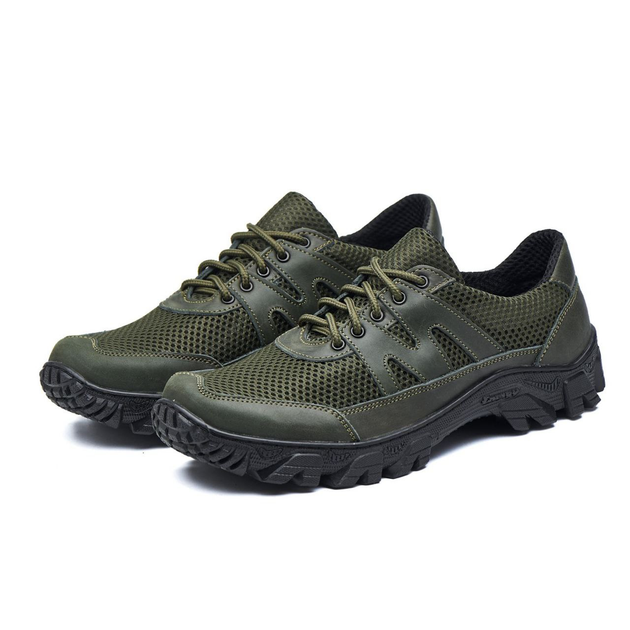 Кросівки тактичні шкiрянi чоловічі літні, сiтка, хакi, 41р