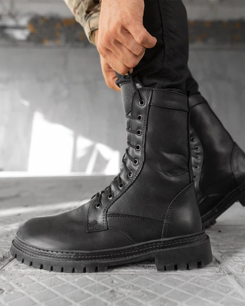 Шкіряні Берці Shaved на хутрі чорні розмір 40