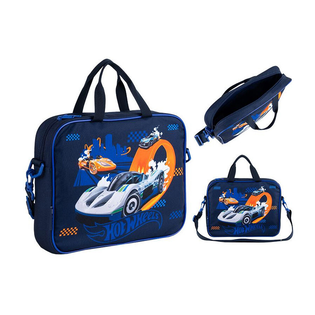 Сумка-портфель А4 Kite Hot Wheels "Машинки Хотвілс" 34х27х7 см тканева синя (HW25-589)