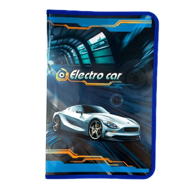 Папка для праці А4 KIDIS Electro Car на блискавці картон синій