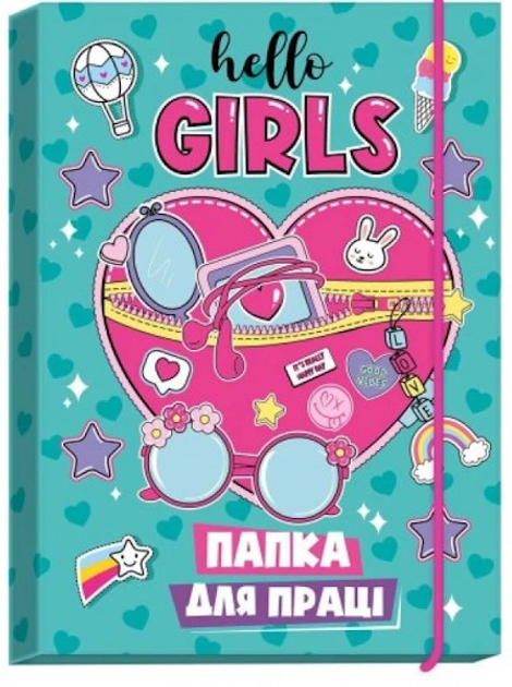 Папка для праці для дівчинки "Рюкзачок", А4 "Сердечко" картонна, на гумці