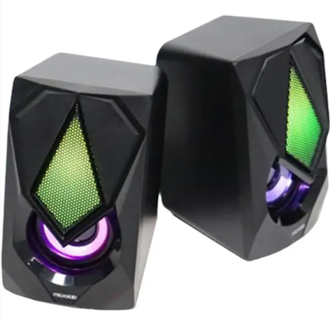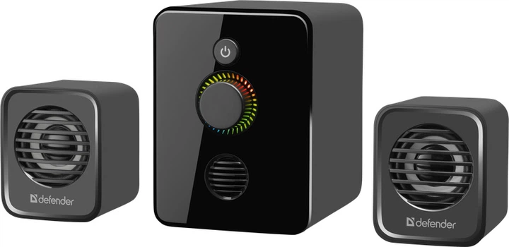 Компактні комп'ютерні колонки 2.0 з підсвічуванням та USB живленням, чорні, 72x82x120 мм