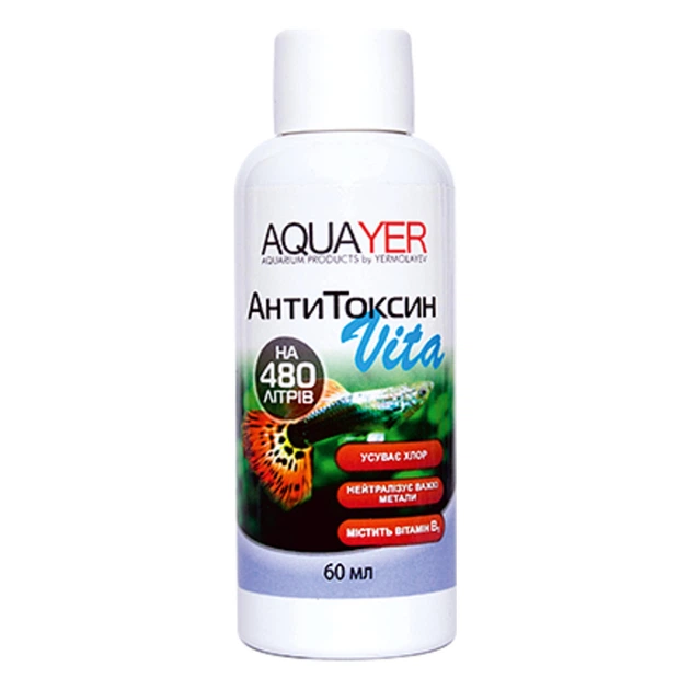 Засіб для підготовки води AQUAYER Антитоксин Vita 60 мл – проти хлорки та важких металів