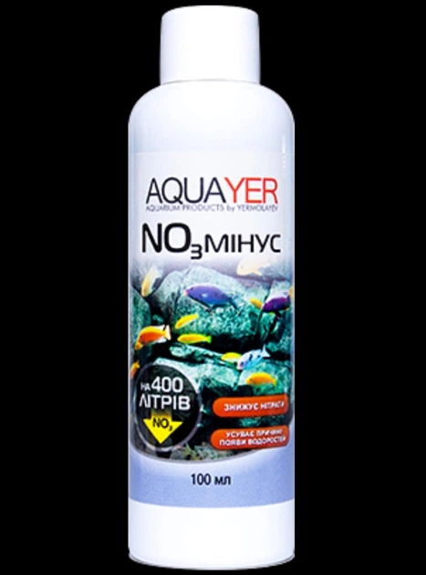 Акваріумна хімія AQUAYER акваріумний кондиціонер для води NO3 мінус 100 мл (NM100)