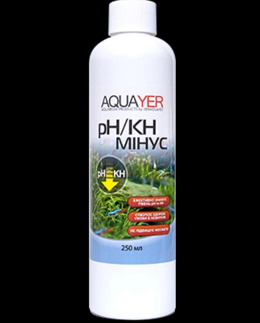 Акваріумна хімія AQUAYER акваріумний кондиціонер для води pH/KH мінус 250 мл (PKM250)