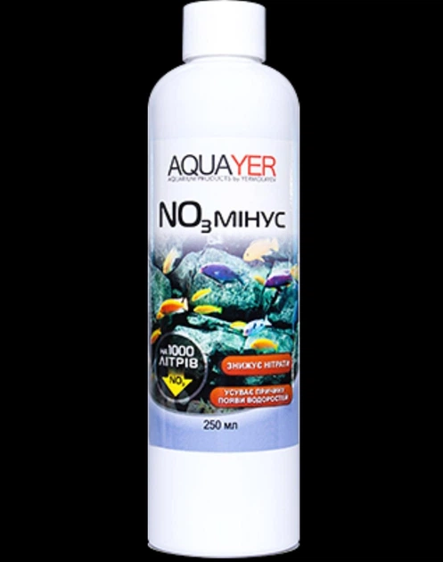 Акваріумна хімія AQUAYER акваріумний кондиціонер для води NO3 мінус 250 мл (NM250)
