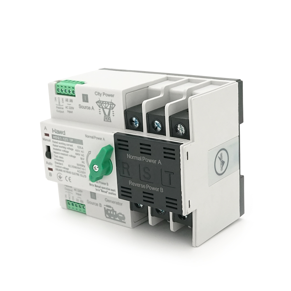 Автомат введення резерву (АВР) чотириполюсний HDQ3-125E/3P, 400V/125A на DIN-рейку для генераторів HDQ3-125E / 3P