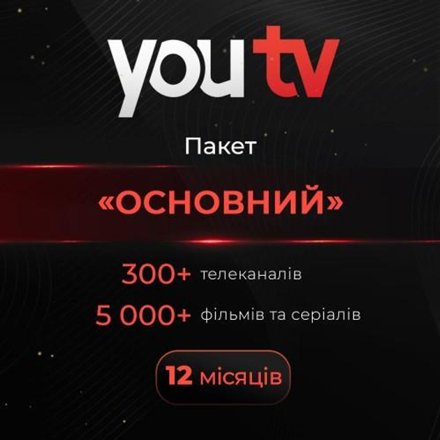 Онлайн-кінотеатр і телебачення промокод тариф youtv "Основний " 300+ телеканалів тисячі фільмів на 6 місяців 5 пристроїв