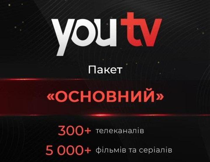 Онлайн-кінотеатр і телебачення промокод тариф youtv "Основний " 300+ телеканалів тисячі фільмів на 12 місяців 5 пристроїв