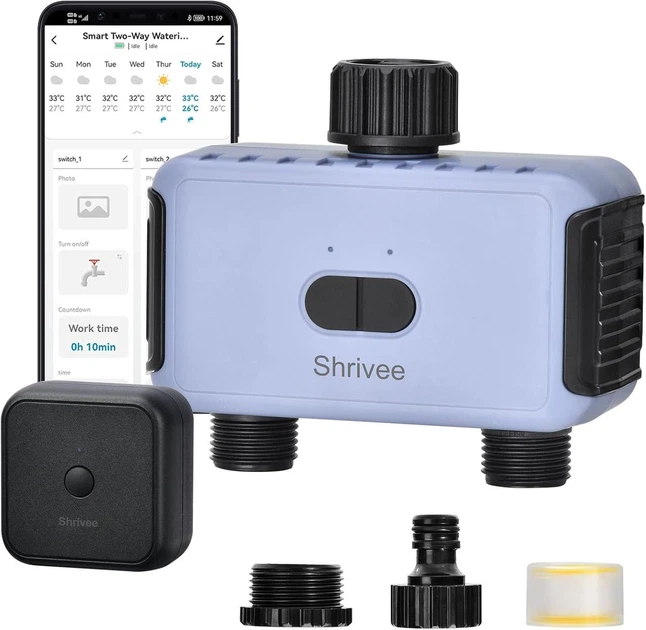 Розумний таймер поливу (2 Зони) WiFi + Bluetooth, контролер для саду, App Control, автоматичний