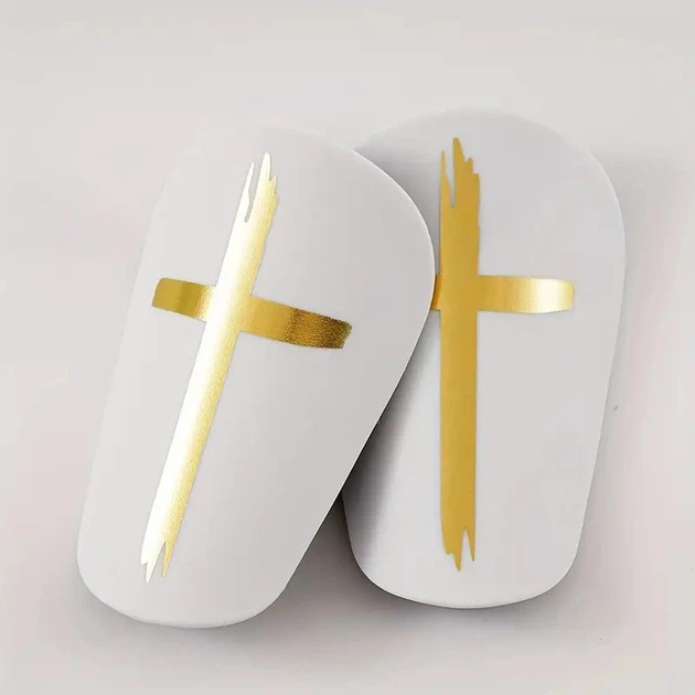 Футбольні міні щитки біло-золотисті / маленькі щитки для футболу