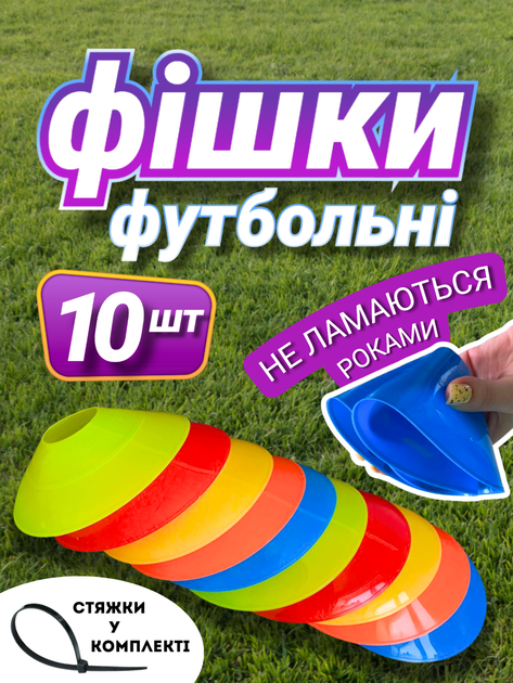Фішки для футболу тренувальні футбольні спортивні пластикові конуси для розмітки футбольного поля набір різнокольорових круг