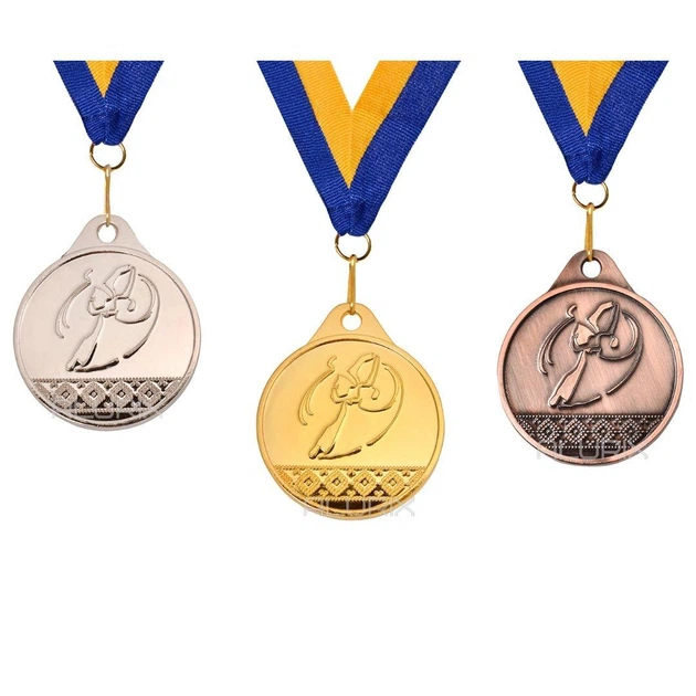Комплект медалей Танці (золото, срібло, бронза), діаметр 6,5 см, жовто-блакитна стрічка
