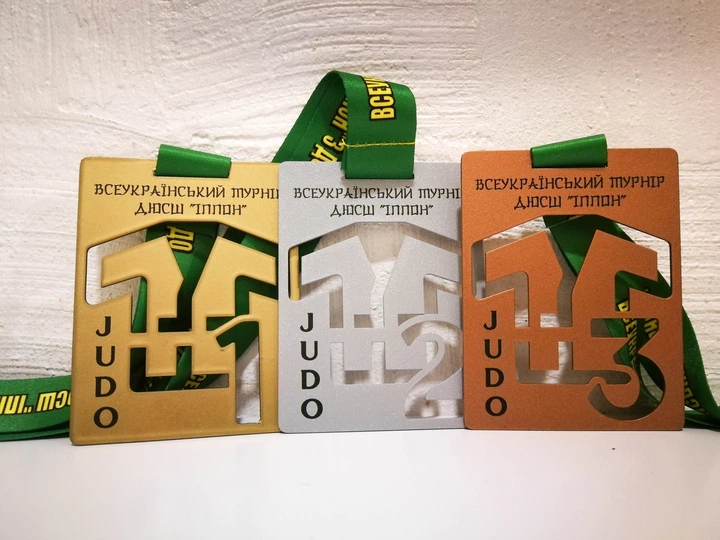 Комплект медалей "E-Trophy" з металу Judo з текстом