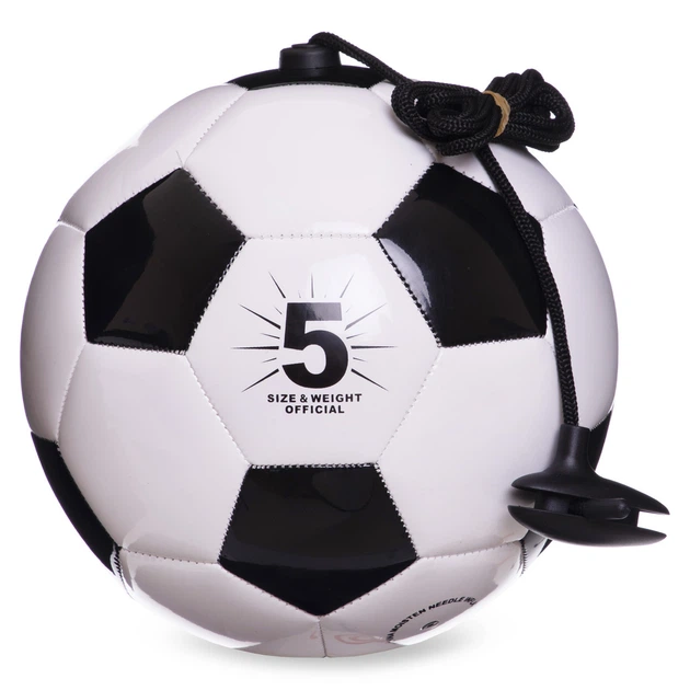 Футбольний м'яч тренажер №5 на мотузці для тренування техніки Zelart OFFICIAL чорний-білий FB-6883-5