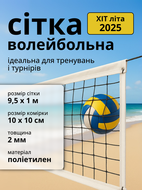 Якісна волейбольна сітка з металевим тросом для волейболу на вулиці у залі чорна АН6903