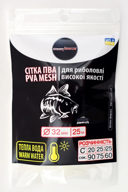 ПВА сітка для риболовлі, сітка ПВА, ПВА сітка для теплої води, 32 мм розмотування 25 м Carp 4391065