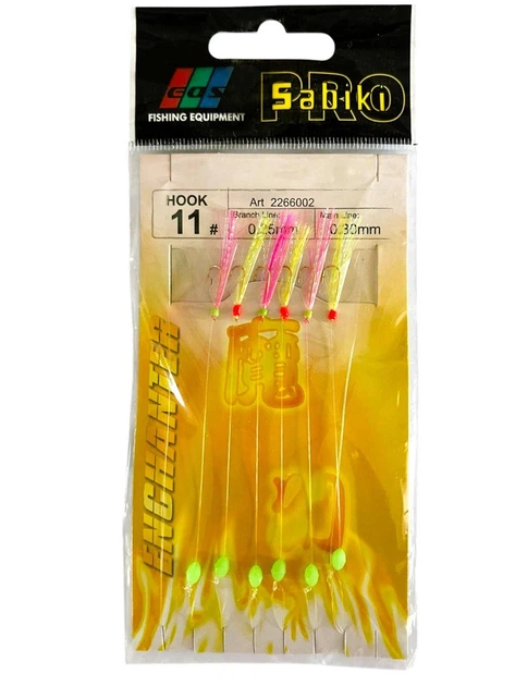 Самодур EOS SABIKI №11 6 гачків жовтий/рожевий, світлонакопичувальна намистина (ставрида, сарган)