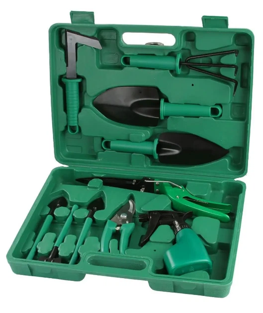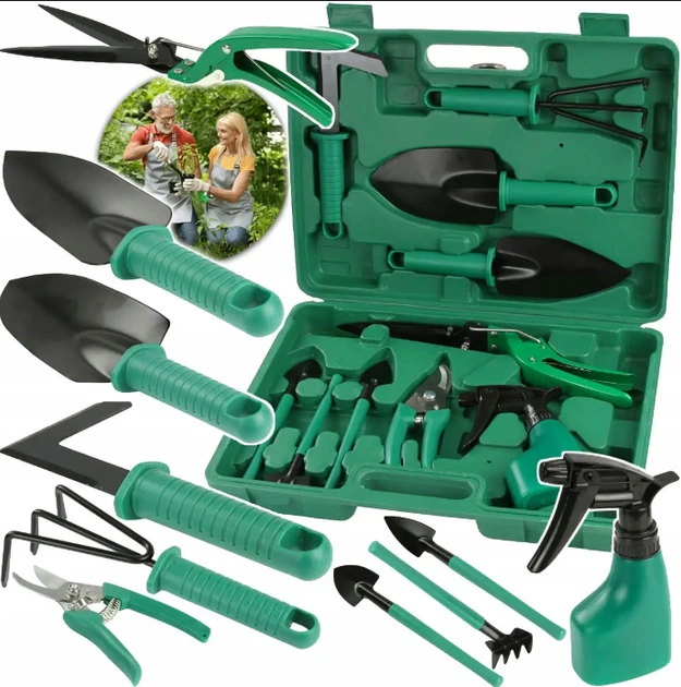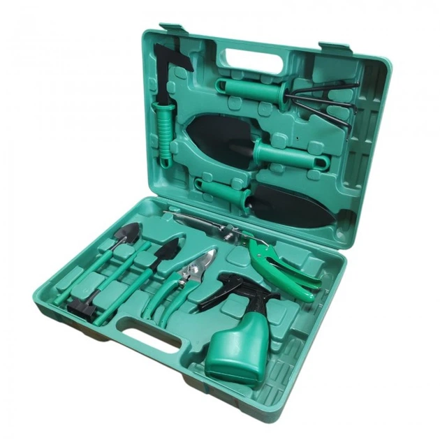Набір садових інструментів 10 шт у кейсі для догляду за рослинами обрізки поливу розпушування пересадки