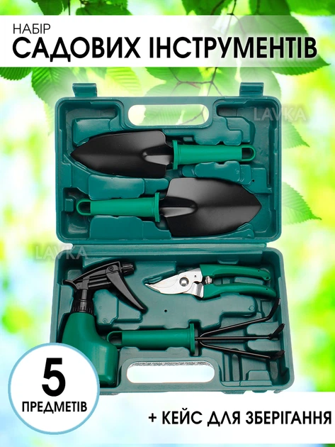 Набір садових інструментів Lavka 5 в 1, лопатки, граблі, пульверизатор, з кейсом для зберігання 2805254201