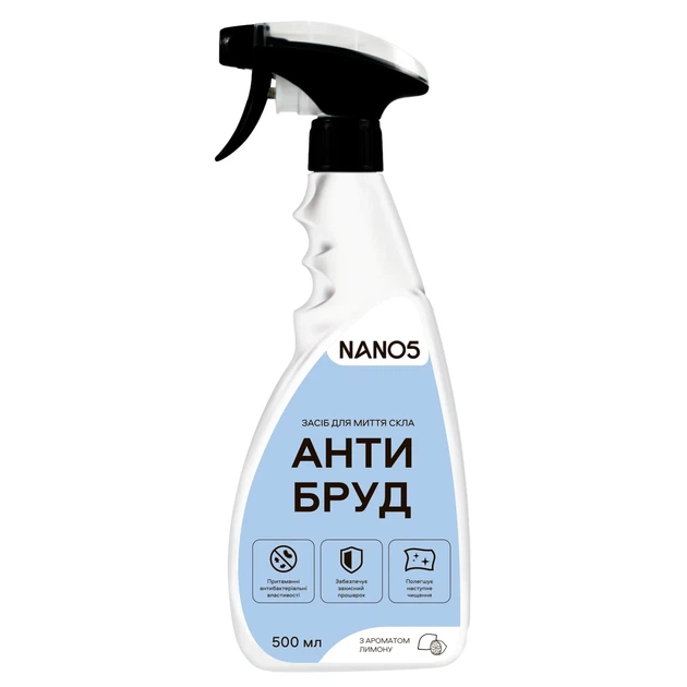 Очисник скла Nano5 "АНТИМОШКА" з ароматом лимона, тригер 500 мл (N50019)