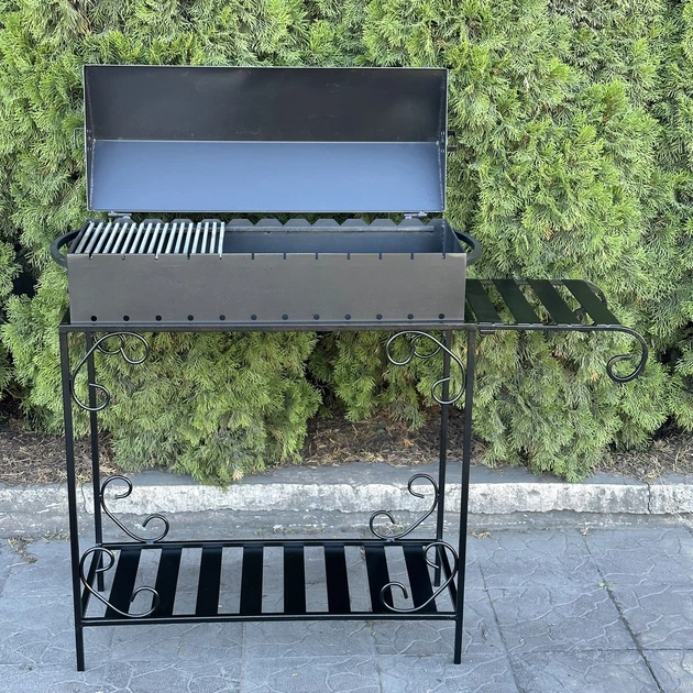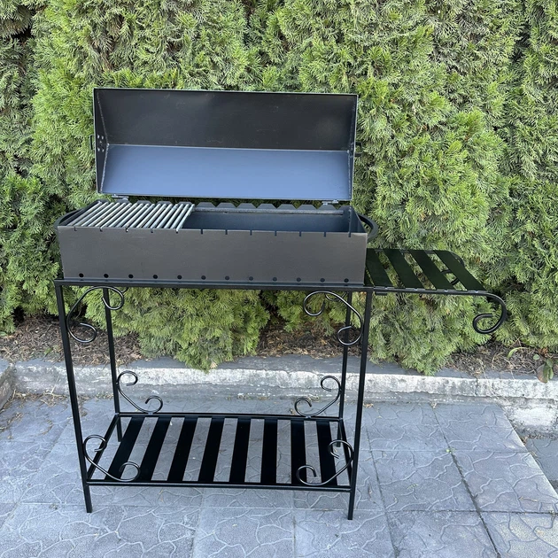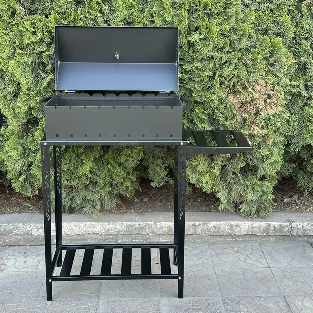 Мангал гриль BBQ SmokeHouse Античний 850х600х900 мм на 15 шампурів збірно-розбірної з BBQ кришкою та підставкою сталь та жар