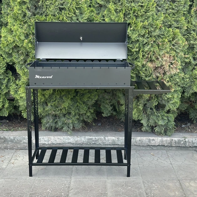 Мангал-барбекю з термометром та розбірною дровницею на 12 шампурів 3мм
