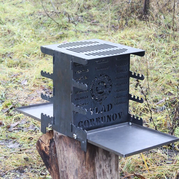 Еко мангал-гриль вертикальний на 6 шампурів з розкладним піддоном