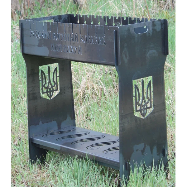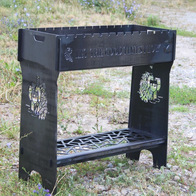 Мангал розбірний високий на 10 шампурів з підставкою для дров та індивідуальним гравіюванням