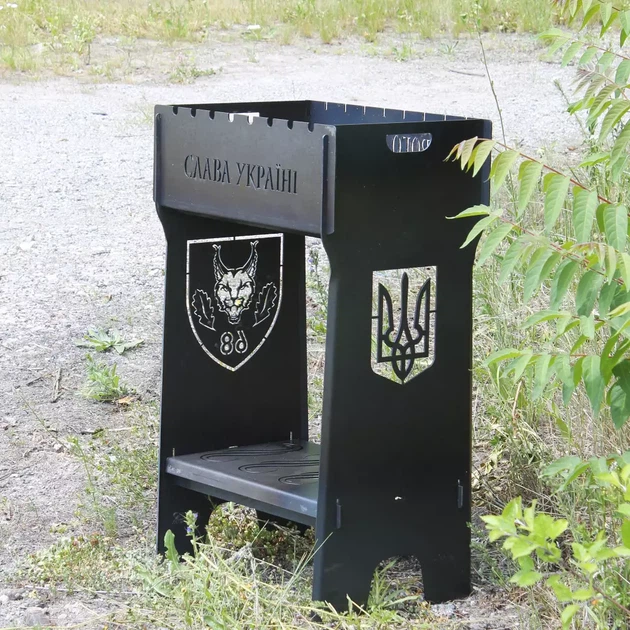Мангал розбірний високий на 8 шампурів з підставкою для дров та індивідуальним гравіюванням