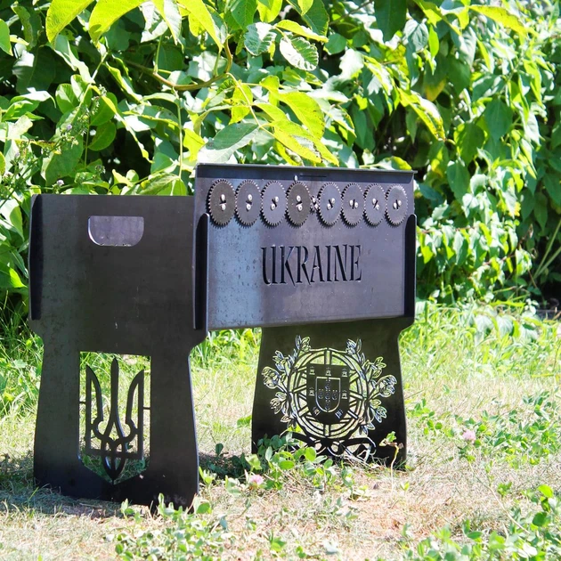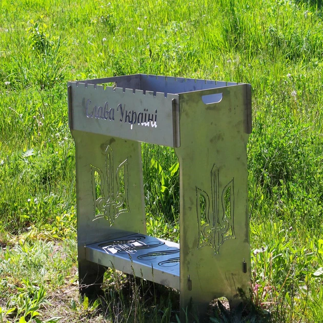 Мангал розбірний "Душу Богу - Життя Україні" з вбудованою шашличницею і мотором на 8 шампурів (SP00261)