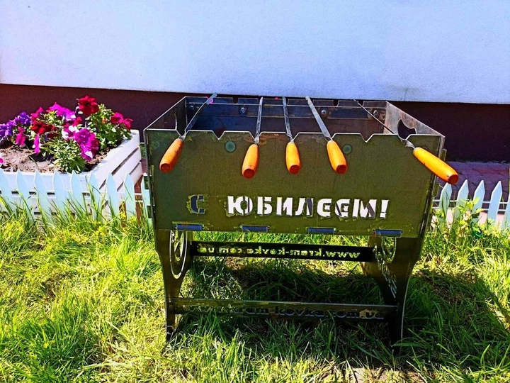Мангал розбірний з індивідуальною написом на 7 шампурів - С юбилеем дорогому куму