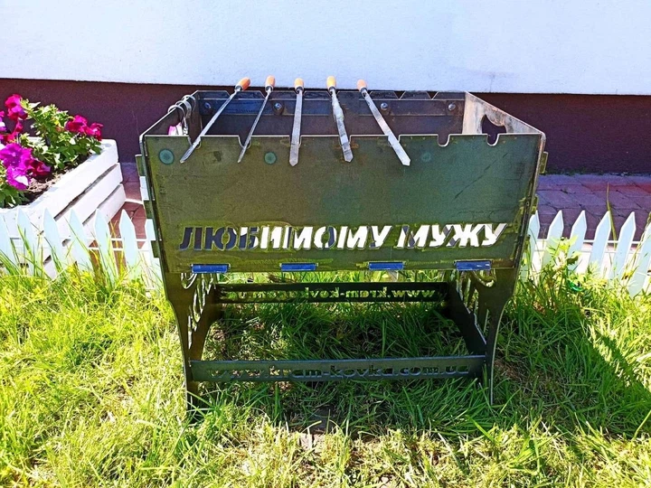 Мангал розбірний з індивідуальною написом на 7 шампурів - Любимому мужу