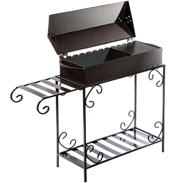 Мангал-барбекю Mzavod Гефест на 12 шампурів з металу 3 мм на дровниці з полицею 132.5х36.5х106.5 см Чорний (21-17-1070210100