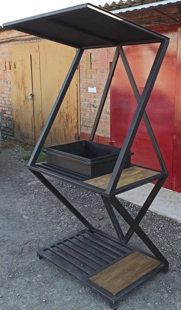 Металевий мангал та дерев'яна стільниця з решіткою знизу 0200404