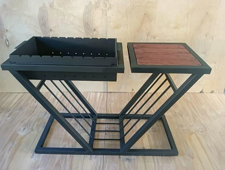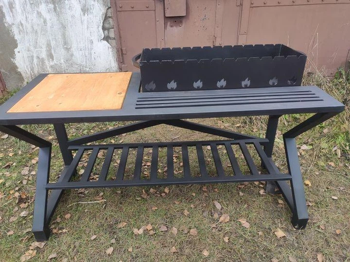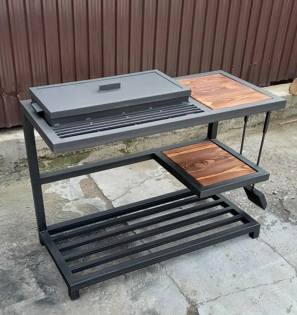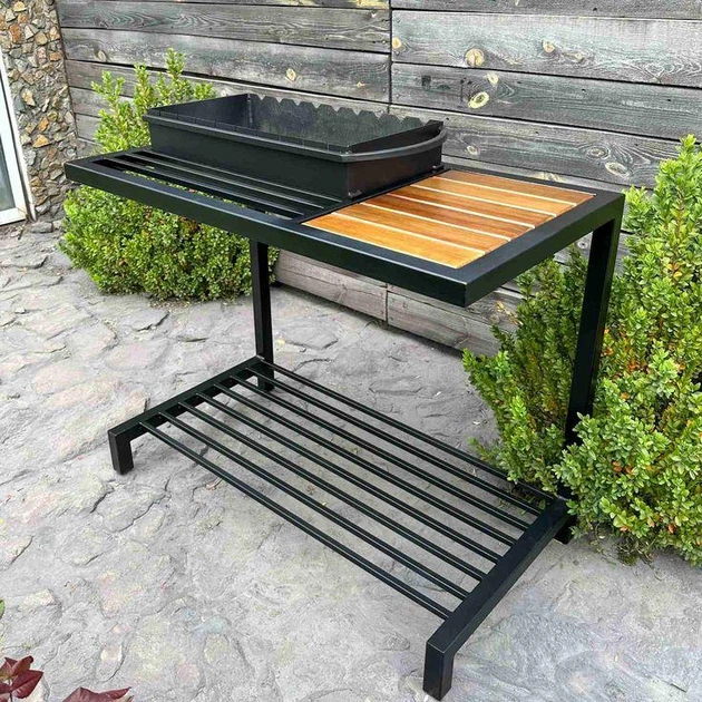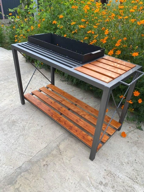 Металевий мангал та дерев'яна стільниця з решіткою знизу 0200405