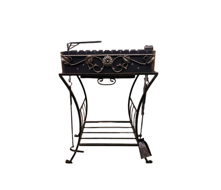 Мангал на 10 шампурів товщиною 3 мм з дровницею, підставкою для казану совок та кочерга в комплекті