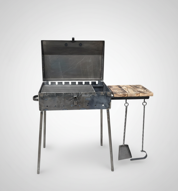 Мангал Сталь 3 мм на 8 шампурів + Гриль-сітка. Розбірний з дерев'яною полицею