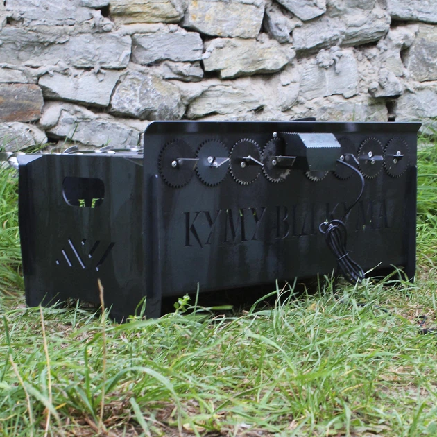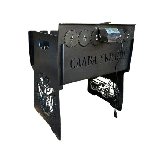 Мангал із вбудованою шашличницею та мотором на 8 шт з гравіюванням