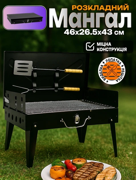 Мангал складаний з гратами A-Plus A-07 46х26.5х43 см + лопатка та вилка для приготування