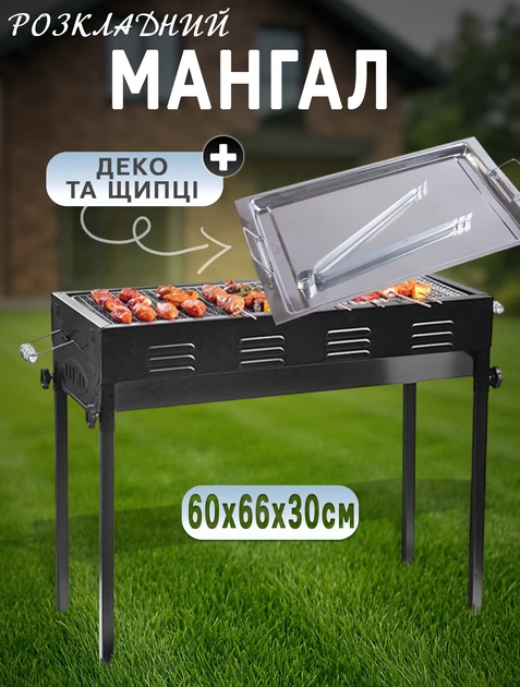 Мангал розбірний з гратами A-Plus A-03-1 60х66х30 см + протвинь та щипці для готування