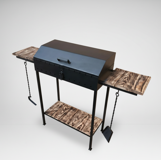Мангал-гриль 3 мм посилений на 12 шампурів | Розбірний | Повний комплект. зі знімними ніжками та дерев'яними полицями з реші