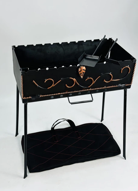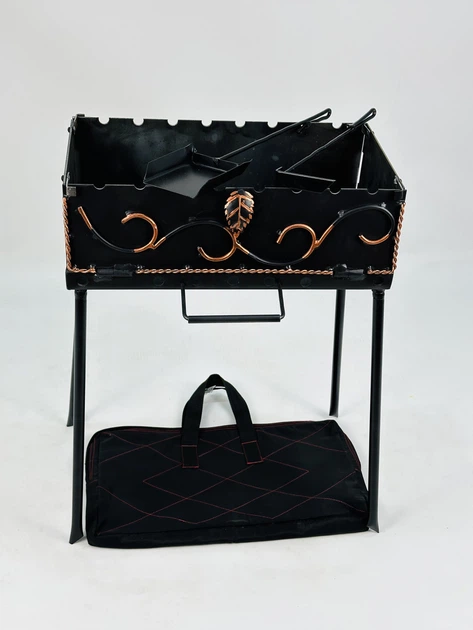Мангал-валіза кований металевий 3 мм на 12 шампурів у чохлі Чорний (21-10-MG-5065)