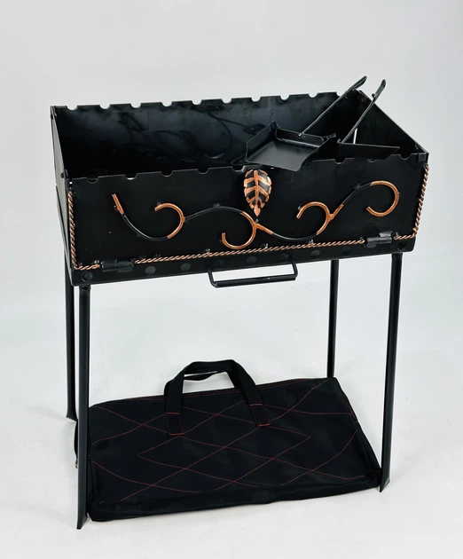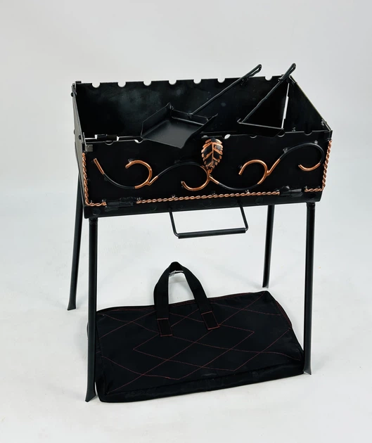 Мангал-валіза кована на 10 шампурів, 2 мм. (мангал, чохол, кочерга та совок)