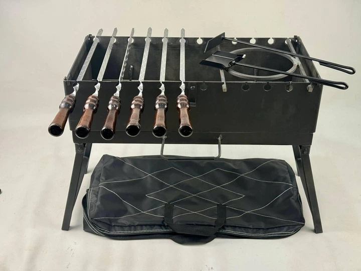 Мангал-чемодан з гриль-полицями KS-UKR 2мм x 6шп + кочерга (S5004)