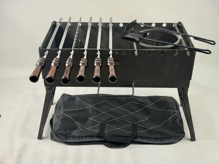 Переносний складний мангал-валіза BBQ з гратами гриль для дачі, портативний набір для шашлику та барбекю