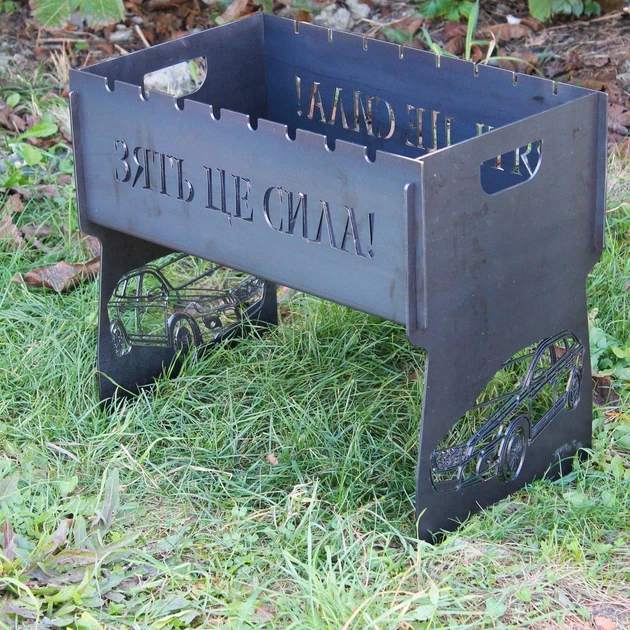 Мангал SHOP-PAN розбірний фарбований (чорний) з індивідуальним гравіюванням на 8 шампурів - Volkswagen