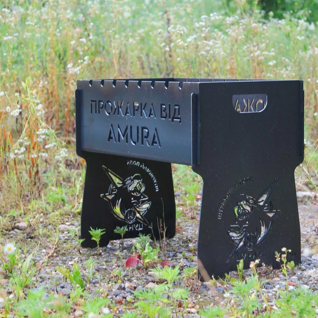 Мангал SHOP-PAN розбірний фарбований (чорний) з індивідуальним гравіюванням на 6 шампурів - Вогонь